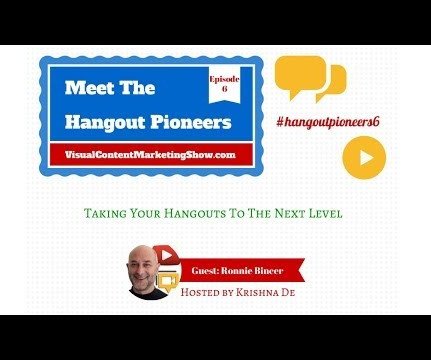 The sixth epsode of The Visual Content Marketing Show will take place on Monday 3 February 2014 at 3 pm /10 am EST and my guest is The Hangout Helper, Ronnie Bincer. SHOW NOTES FOR THE VISUAL CONTENT MARKETING SHOW EPISODE 6 - HOW TO TAKE YOUR GOOGLE HANGOUTS TO THE NEXT LEVEL.